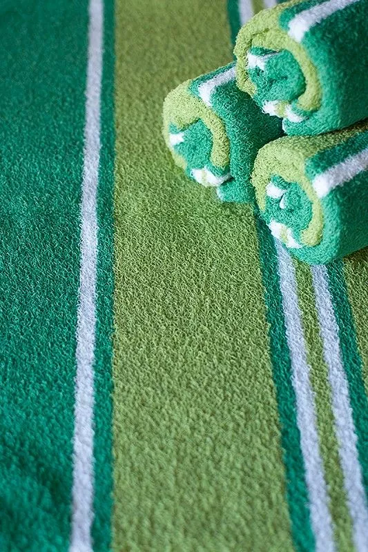 Обратите внимание на махровые полотенца, выполненные в ярких зеленых цветах.